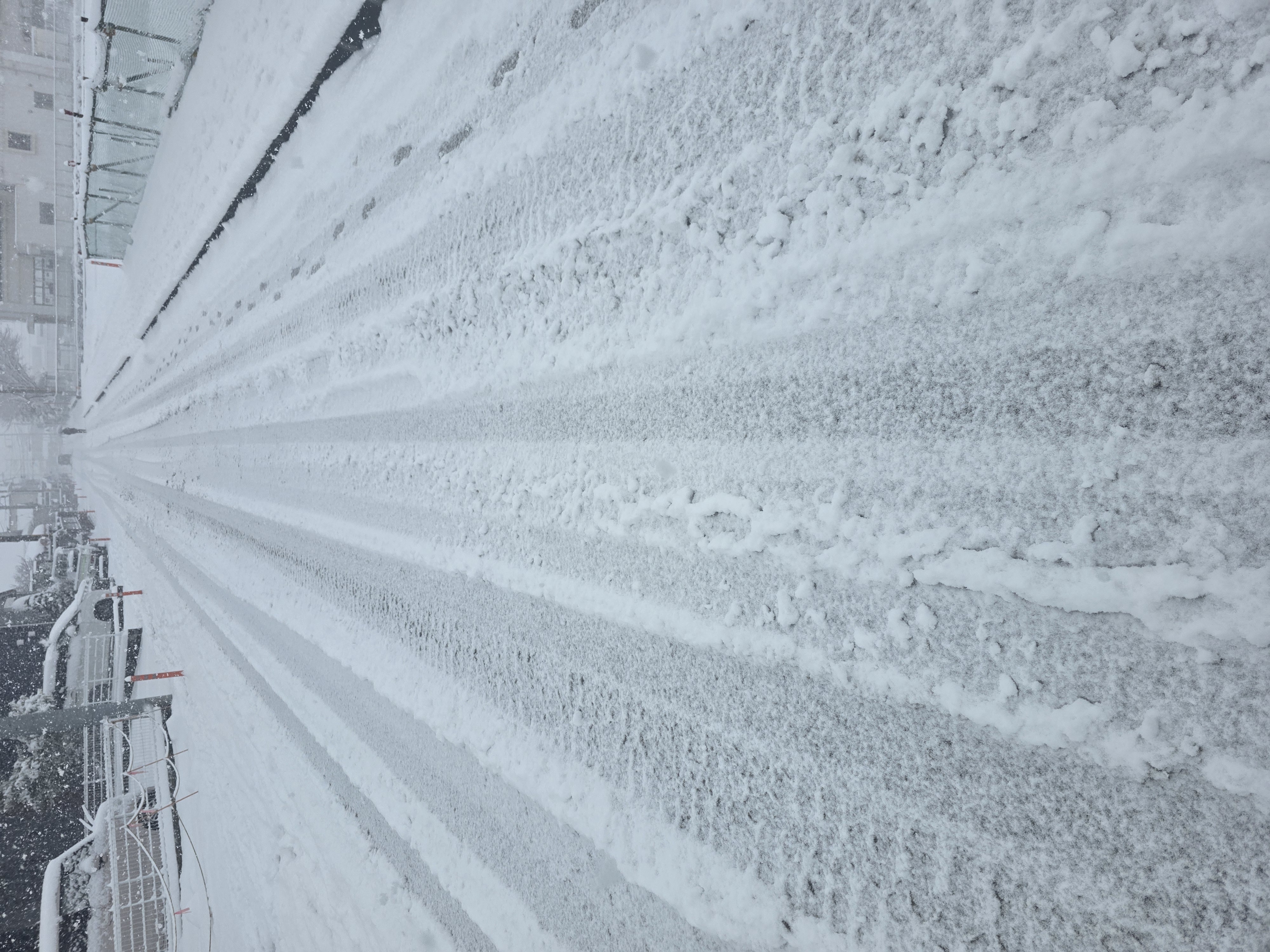 雪が止んだ後も、明日の朝は路面が凍結してガチガチになることが予想されます。